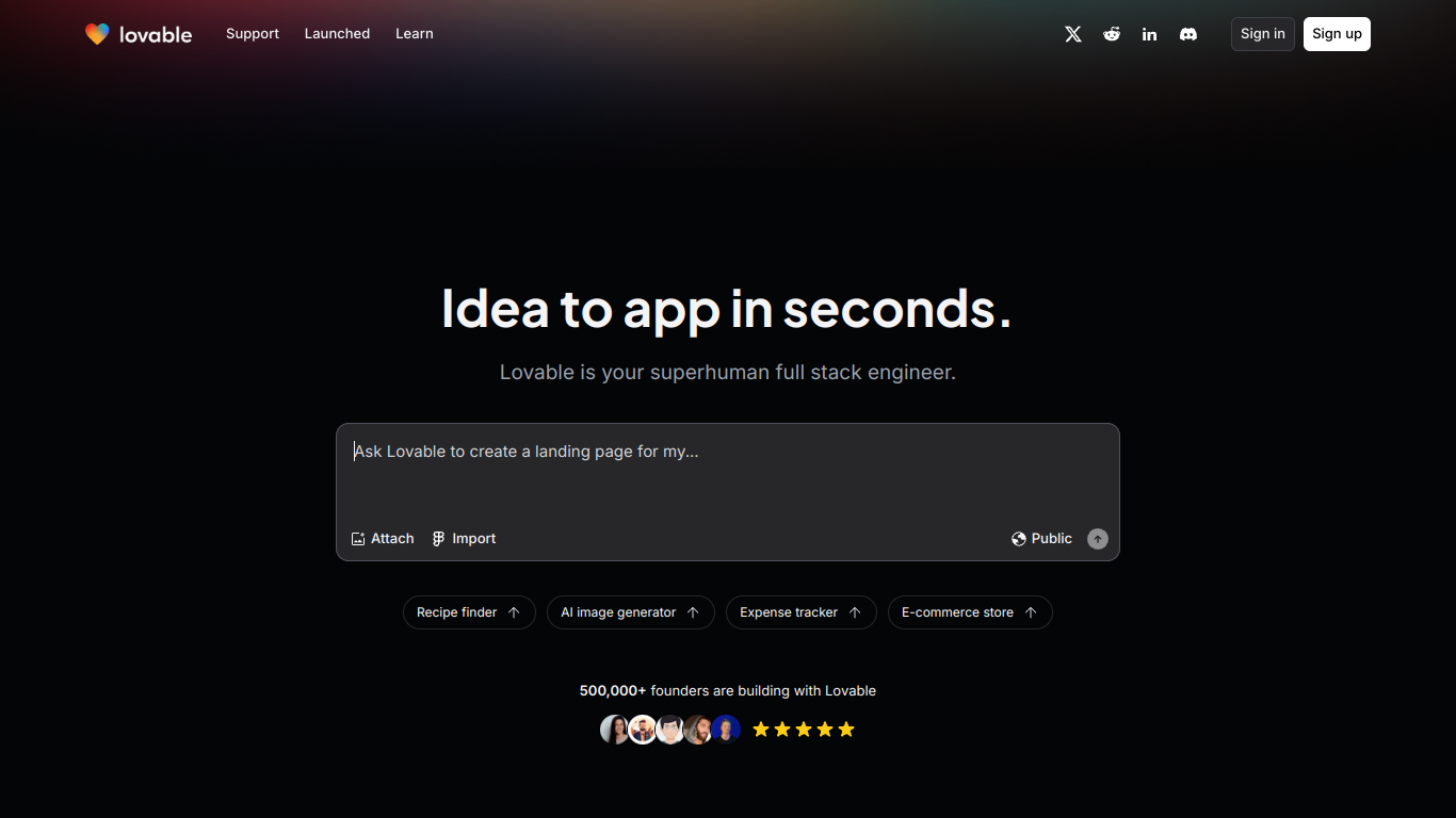 Com mais de 500.000 fundadores utilizando Lovable, você descreve sua ideia e a plataforma gera a primeira versão do projeto. A funcionalidade "Select & Edit" garante alterações precisas, enquanto a integração com bancos de dados e APIs expande as possibilidades de backend. O Lovable é ideal tanto para designers quanto para equipes de produto, permitindo que membros não técnicos participem ativamente no desenvolvimento.